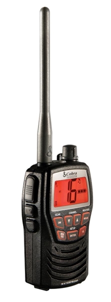 The Cobra MR HH125 is a fully featured VHF radio with a rugged compact design. It's perfect for recreational boaters or as a portable backup on larger vessels. It comes standard with a removable spring loaded belt clip, lanyard and DC cigarette lighter charger. Anyone who lives, works or plays on the water needs one of these VHF radios. It is packaged with long-lasting rechargeable NiMH batteries that won't develop a memory when charging. It can also be used with 5 standard AAA alkaline batteries in emergencies.
